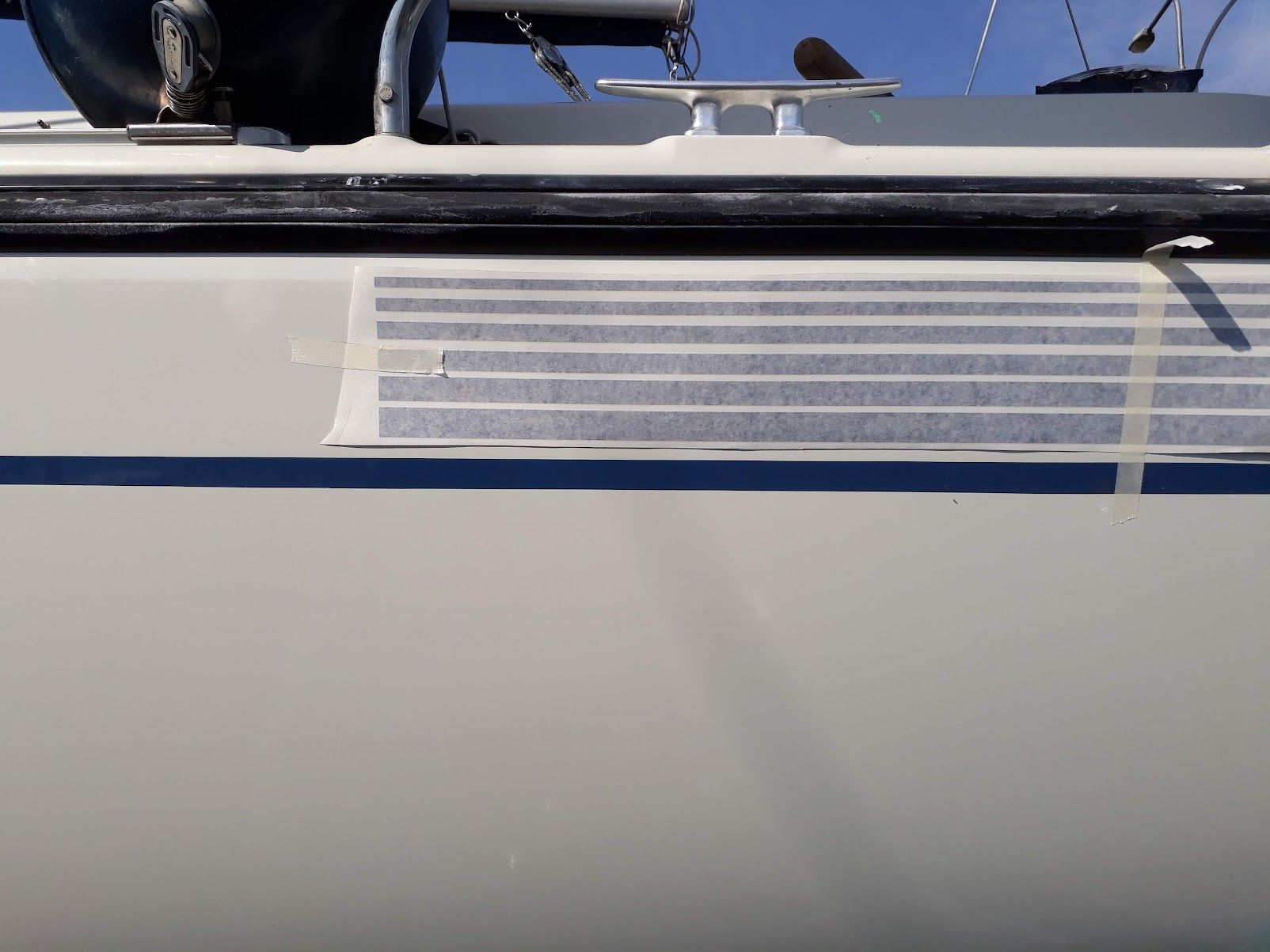 Deze striping kunt u zelf - met een beetje handigheid - aanbrengen. De kleur van deze Dehler stripings komen overeen met de originele kleur.